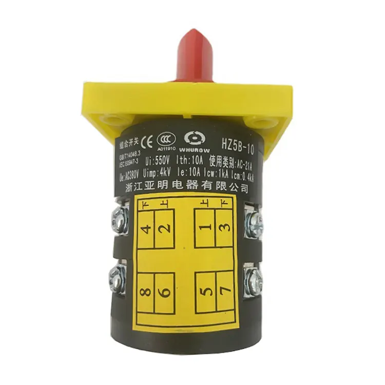 O interruptor de came rotativo combinado de três posições 10A é uma versão melhorada da série HZ5. É adequado para circuitos CA 50 Hz com tensão nominal de operação de até 380 V e é utilizado para partida, parada, reversão e regulação de velocidade de motores.