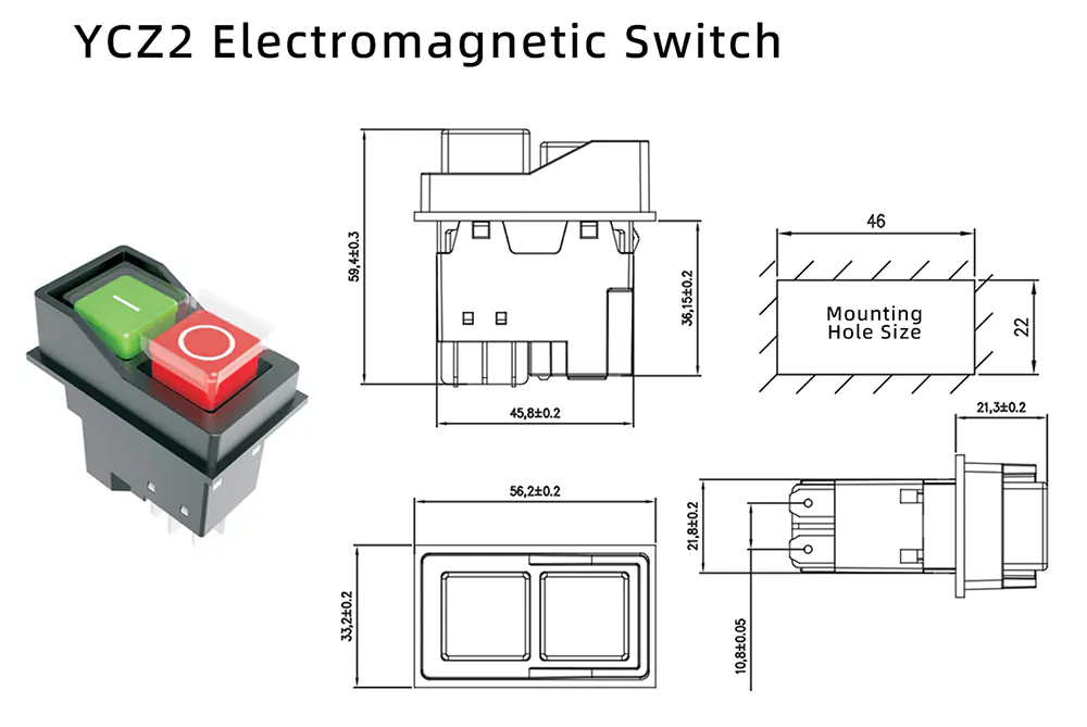 Adaptado para condições de trabalho industrial, o interruptor eletromagnético de botão médio YCZ2-D 16A adota proteção integrada contra perda de energia e subtensão, evitando falhas inesperadas do dispositivo e mantendo a operação estável.
