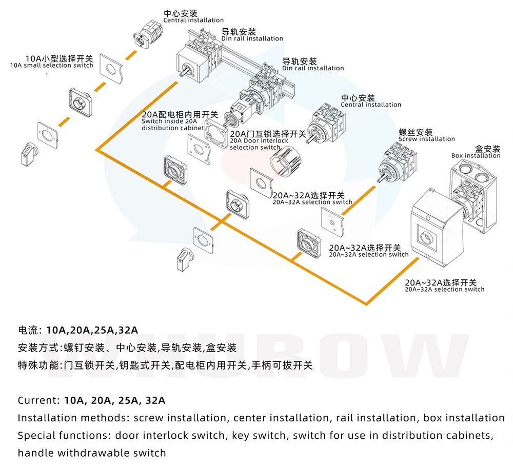 - Combinações de cames personalizáveis: por meio de diferentes combinações de cames, a chave pode atender aos requisitos liga-desliga de contato de várias configurações, realizando adaptação personalizada a diferentes circuitos de controle.