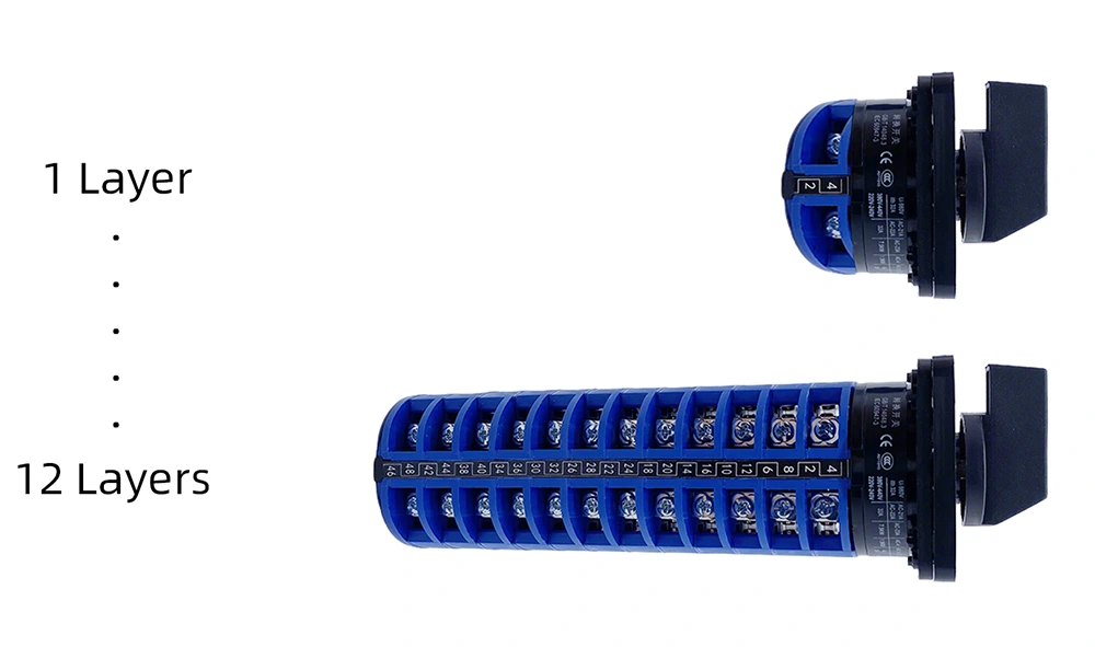 E este interruptor de came rotativo 32A pode ser personalizado (de 1 a 12 camadas):