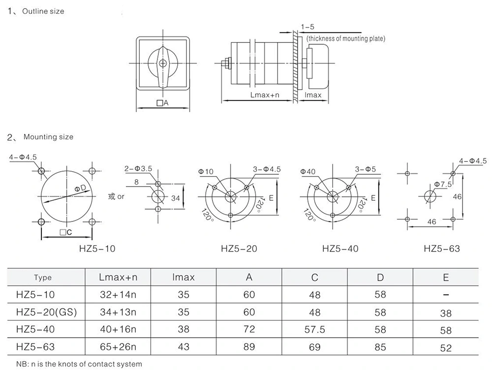 O interruptor de came rotativo com combinação de cadeado YAMING 63A (série HZ5) possui parâmetros centrais precisos, adaptáveis a cenários industriais complexos e excelente desempenho profissional: