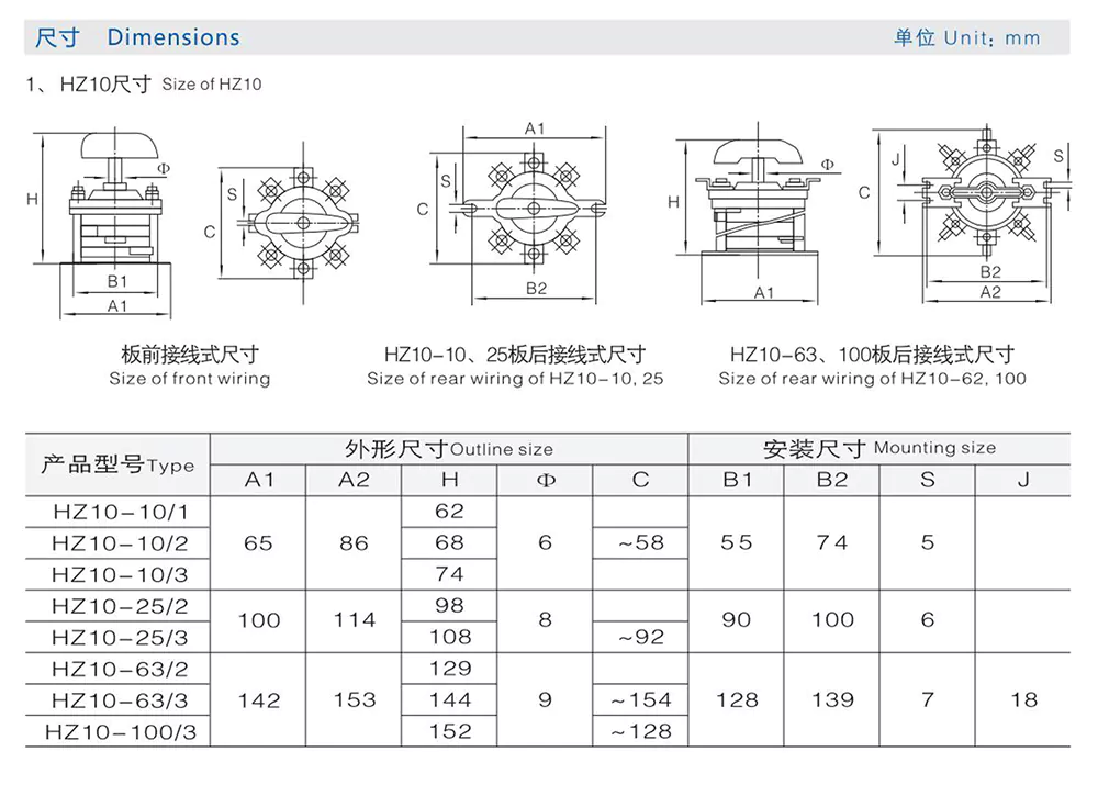Os interruptores de came combinados HZ10-10/3 10A são adequados para uso em máquinas de solda para regular correntes abaixo de 100A, e para os circuitos principais de equipamentos elétricos e a conversão de aparelhos elétricos auxiliares em CA 50Hz (ou 60Hz) com tensão nominal de 380V e abaixo.
