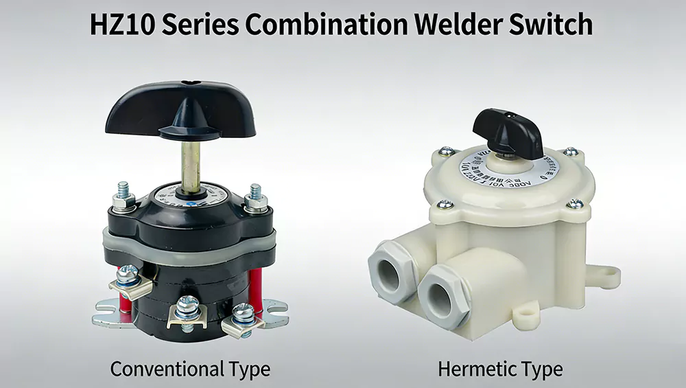 O interruptor de came combinado tipo hermético HZ10-M 10A regula a corrente de soldagem abaixo de 100A. Servem como interruptores do circuito principal e comutadores de circuito auxiliar para equipamentos elétricos, adequados para CA 50/60 Hz até 380V.